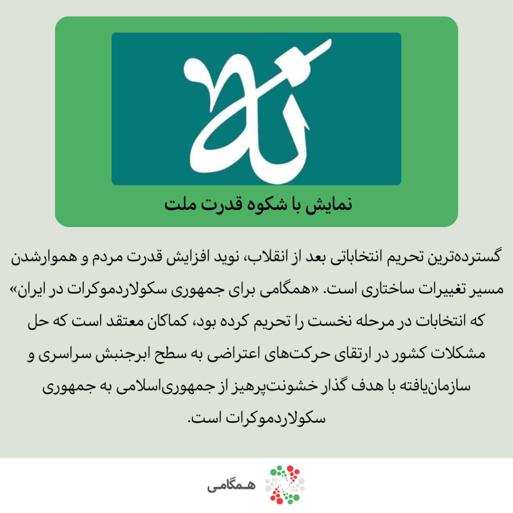 گستردهترین تحریم انتخاباتی بعد از انقلاب، نوید افزایش قدرت مردم و هموارشدن مسیر تغییرات ساختاری است.