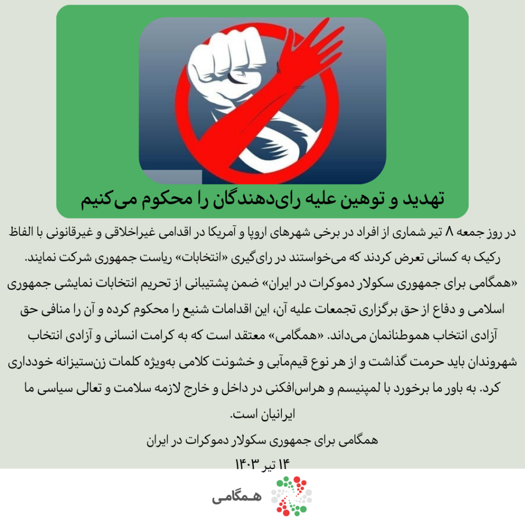 تهدید و توهین علیه رایدهندگان را محکوم میکنیم