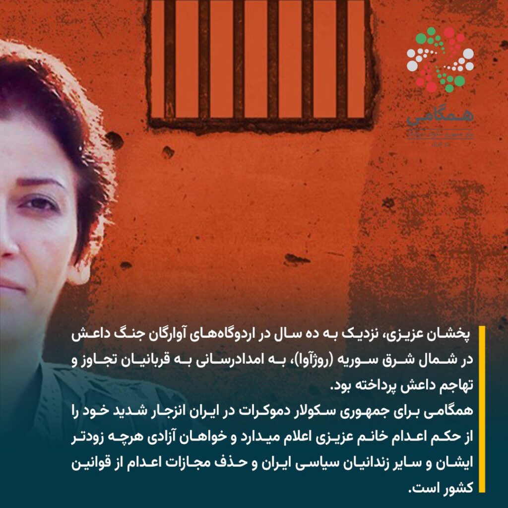 “همگامی” خواهان لغو حکم اعدام خانم پخشان عزیزی و آزادی فوری ایشان است