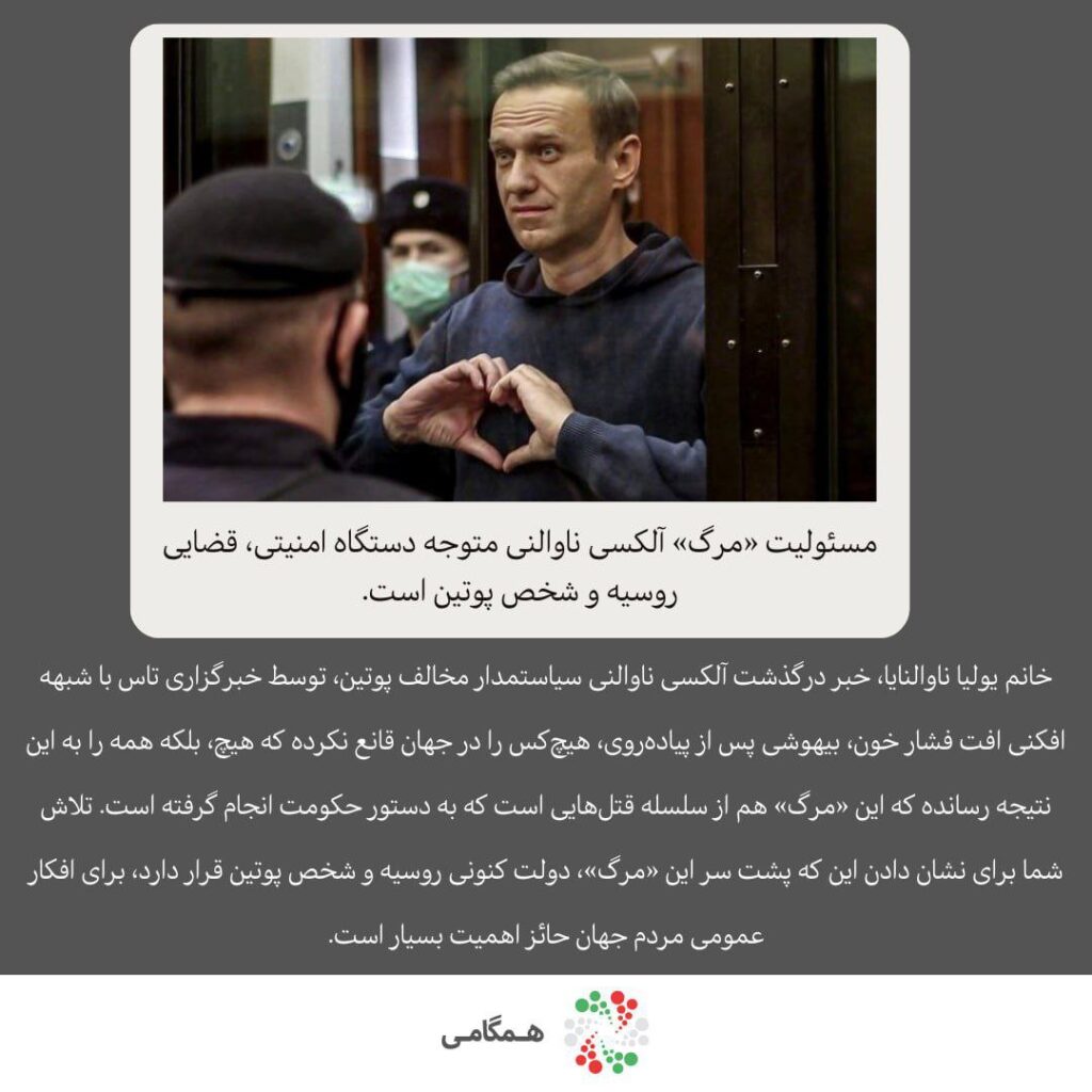 پیام تسلیت «همگامی» به مناسبت قتل سیاسی آلکسی ناوالنی