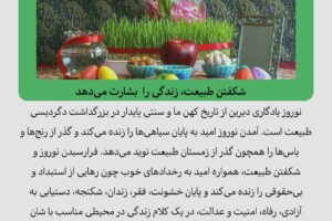 با امید به گسترش دستاوردهای جنبش دموکراتیک و آزادی‌خواهانه مردم به استقبال سال ۱۴۰۳ برویم همگامی فرارسیدن نوروز را به ملت ایران تبریک می‌گوید. نوروز یادگاری دیرین از تاریخ کهن ما و سنتی پایدار در بزرگداشت دگردیسی طبیعت است. آمدن نوروز امید به پایان سیاهی‌ها را زنده می‌کند و گذر از رنج‌ها و یاس‌ها را همچون گذر از زمستان طبیعت